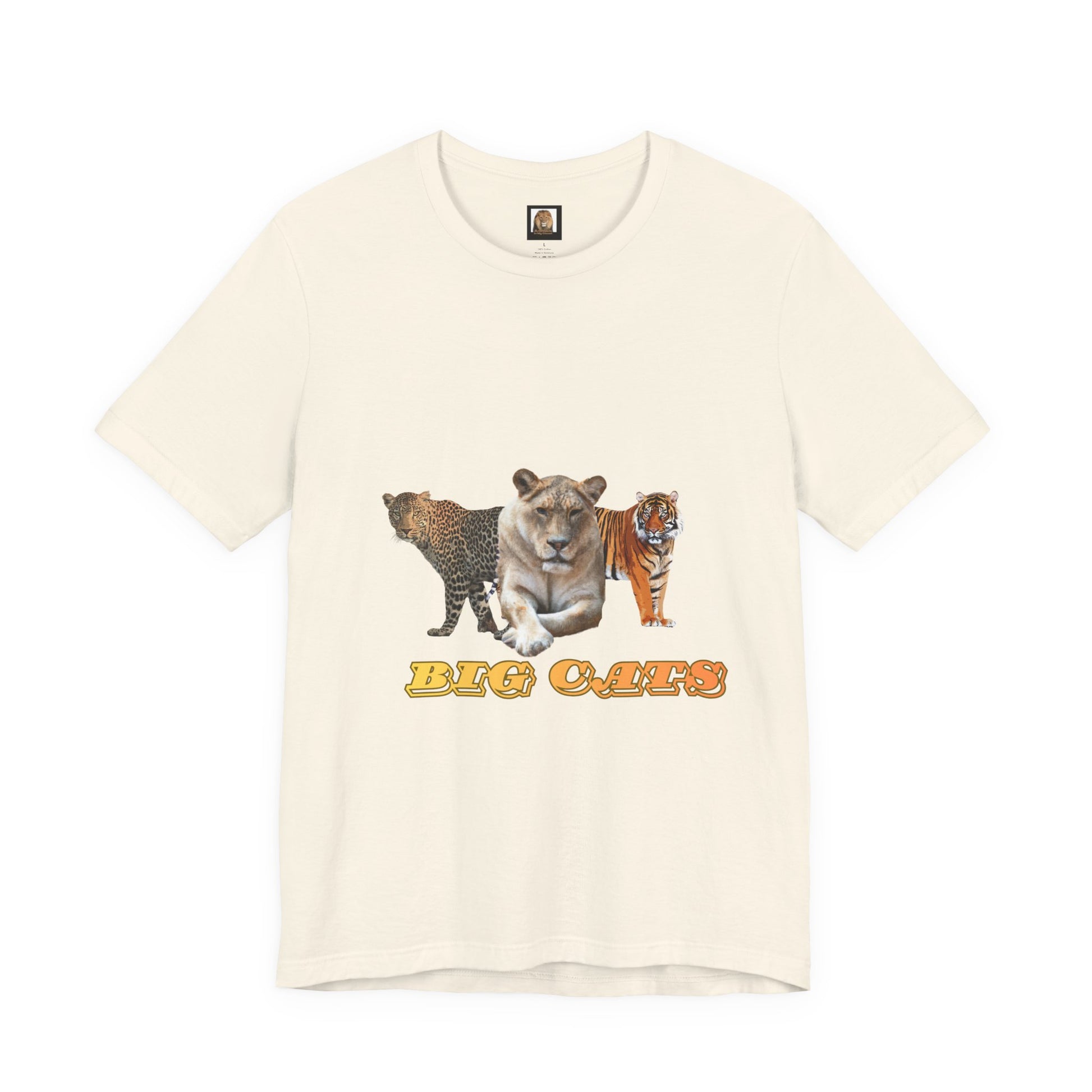 This classic unisex jersey short sleeve tee fits like a well-loved favorite. Our classic Big Cats design has been altered with different text, and is now available in a female version, featuring a fierce lioness, flanked by a tigress and a leopard. Made of 100% cotton, it's available in 5 colors in 9 sizes.