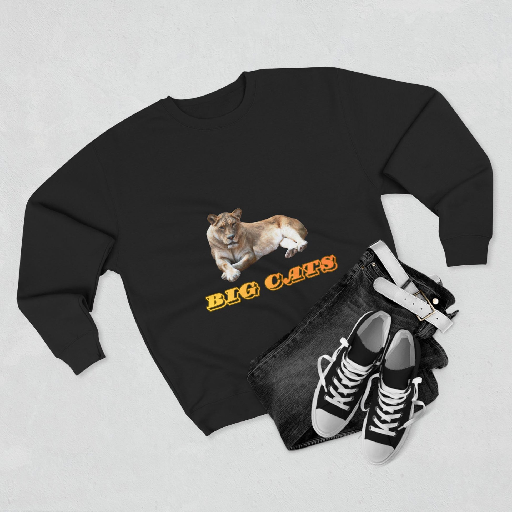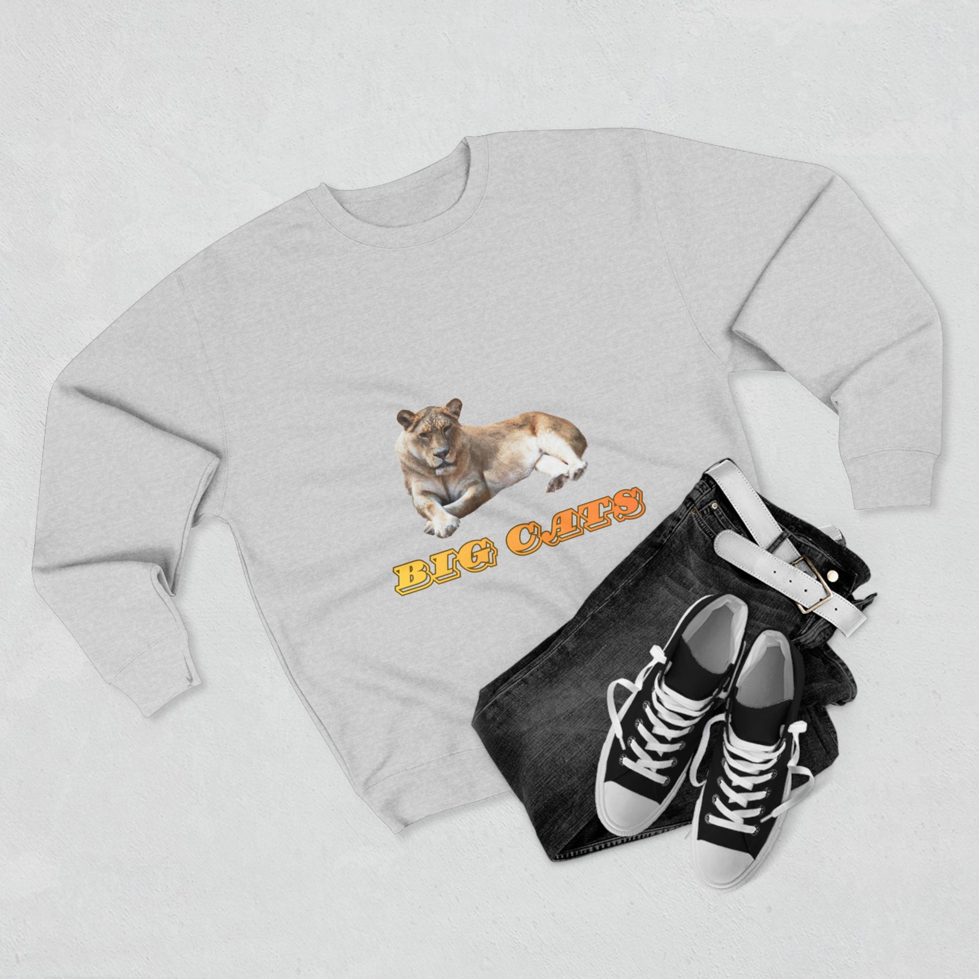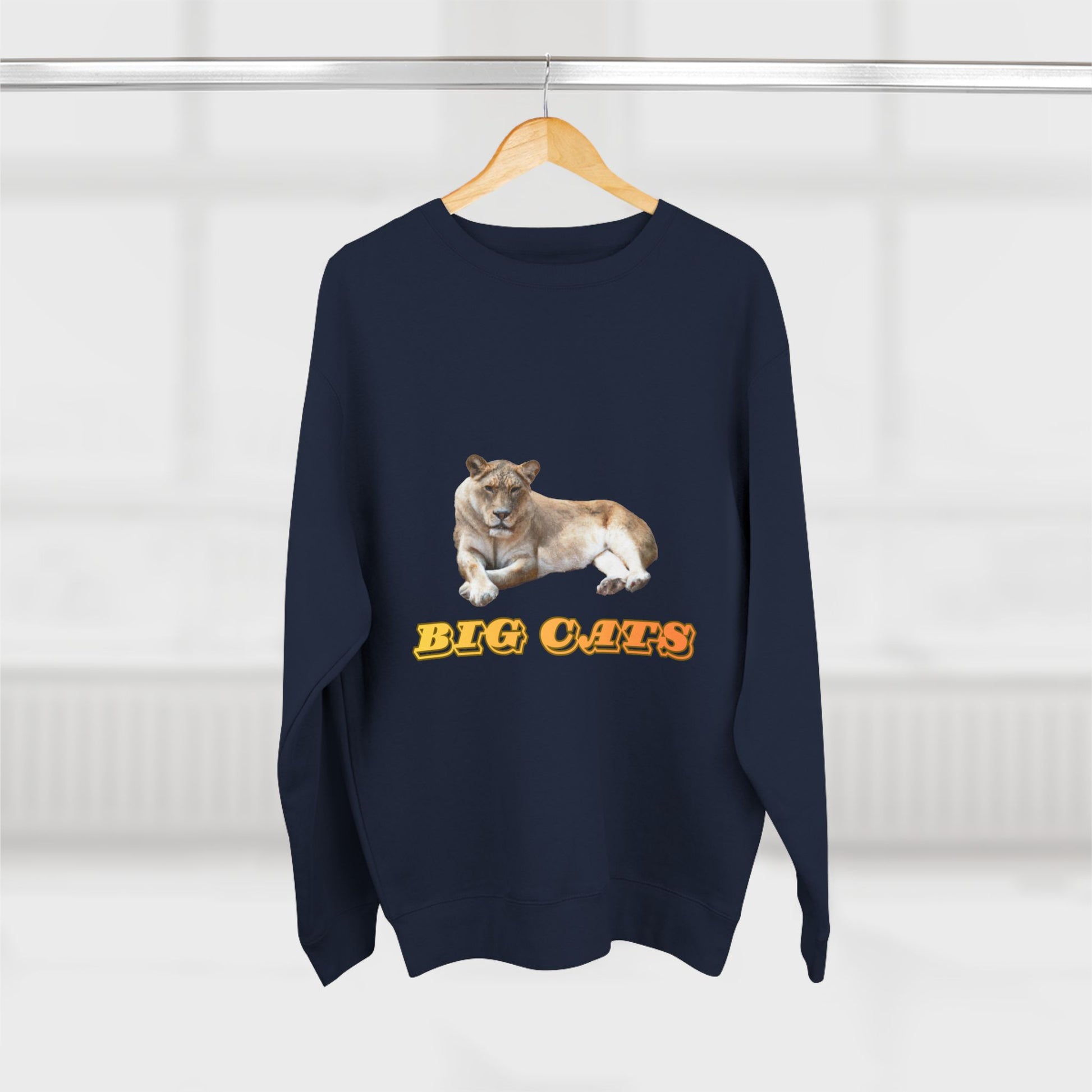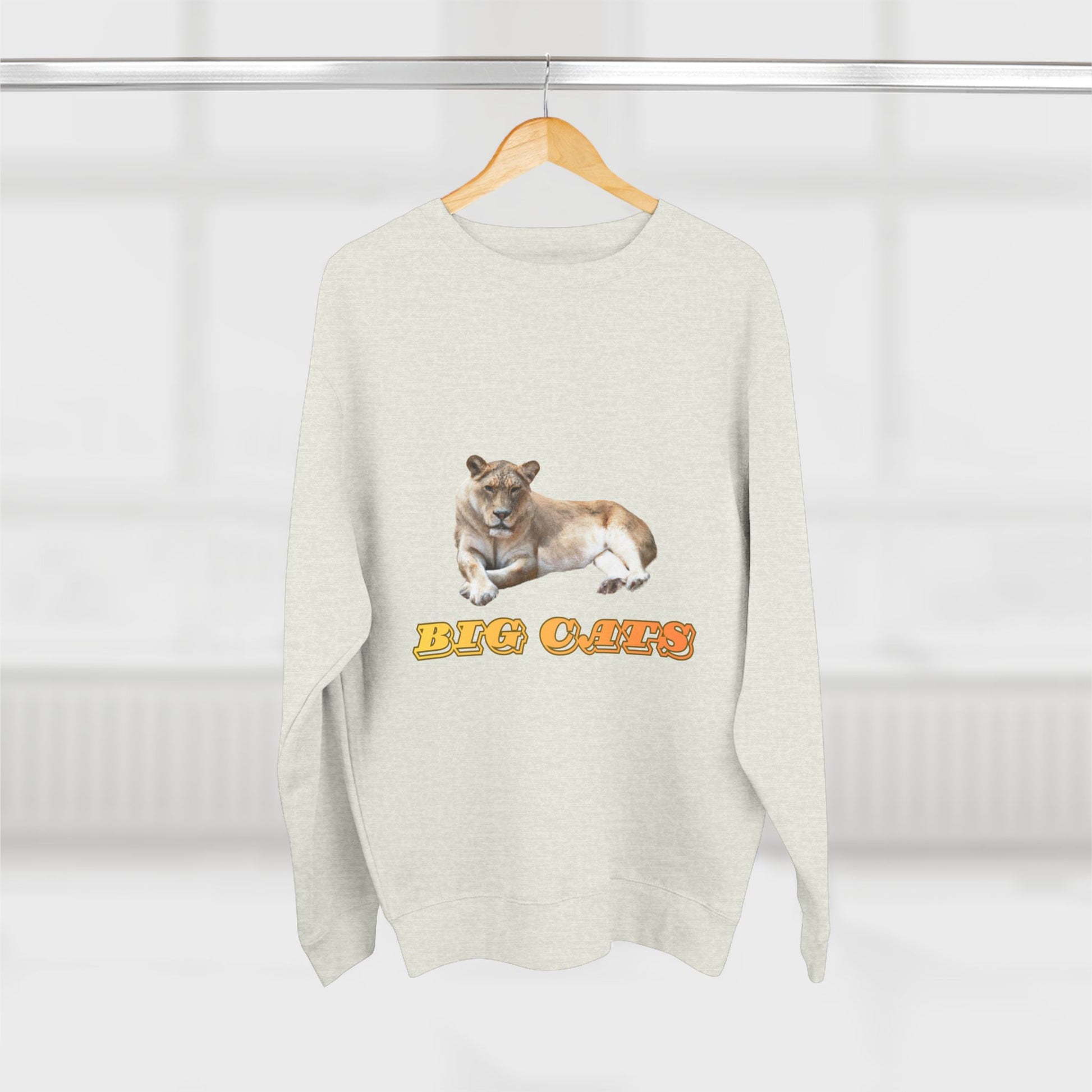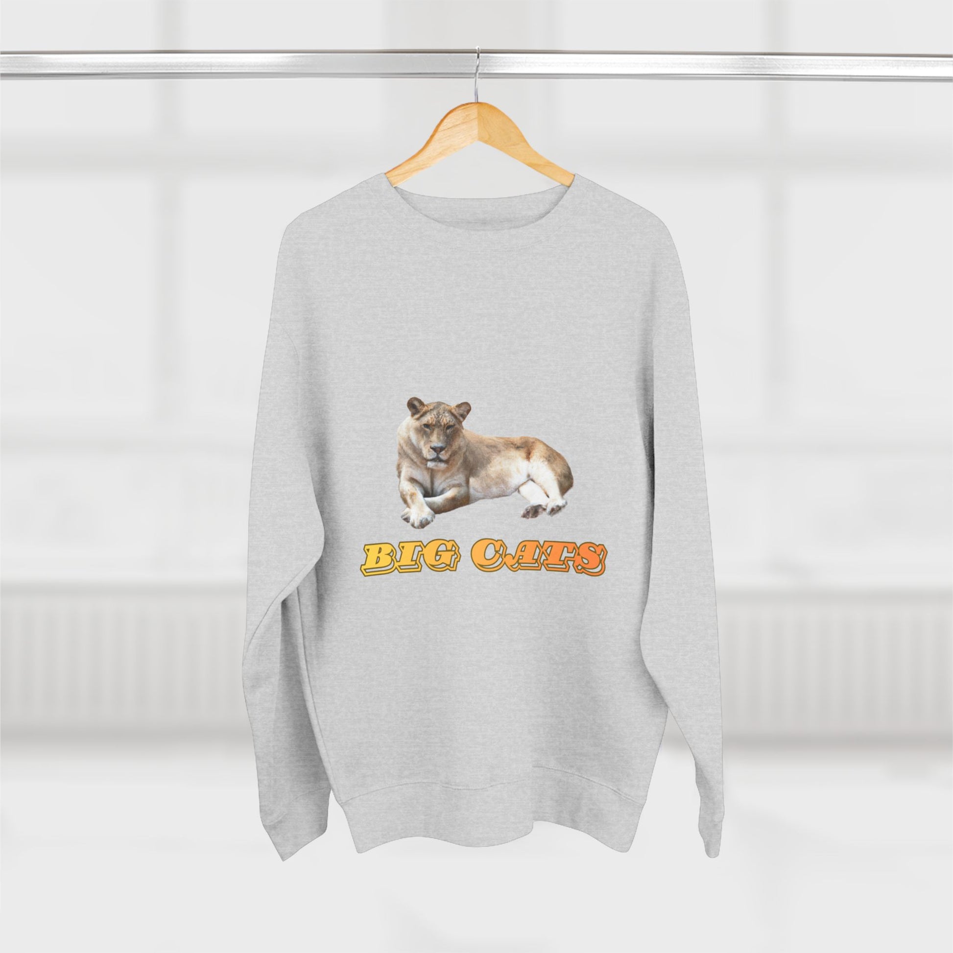 This premium crew neck sweatshirt is sure to keep you warm and stylish all day long. It's part of our Big Cats Collection, featuring a fierce lioness. Made of 80% cotton, 20% polyester, it's available in 4 colors in 5 sizes, from S to 2XL.